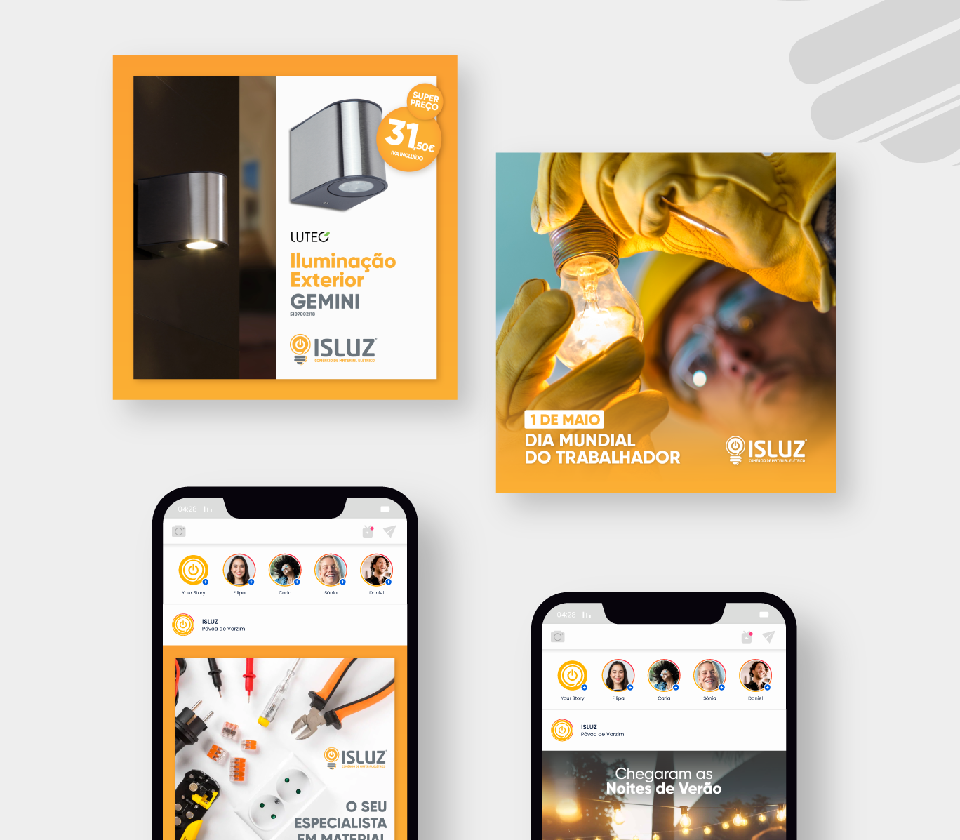 Criação de conteúdo para as redes sociais dos serviços e produtos da loja de componentes elétricos ISLUZ.
